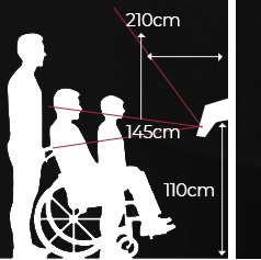 FaceStation 2 cho phép phạm vi quét từ 145cm ~ 210cm. Với độ nghiêng tùy chọn, FaceStation 2 phf hợp cả những người ngồi xe lăn và trẻ em.