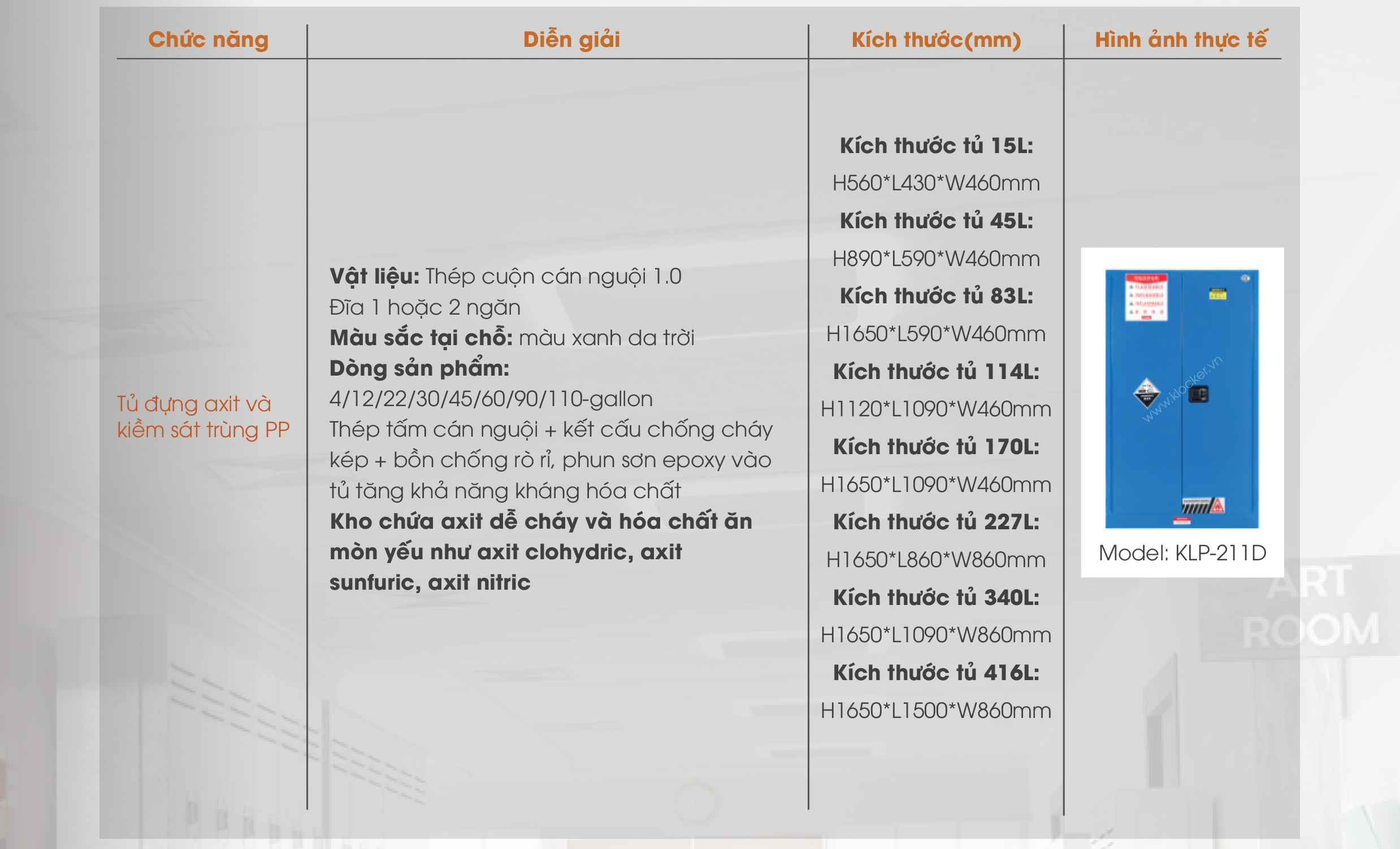 Tủ chứa axit và kiềm sát trùng PP KLP-211D